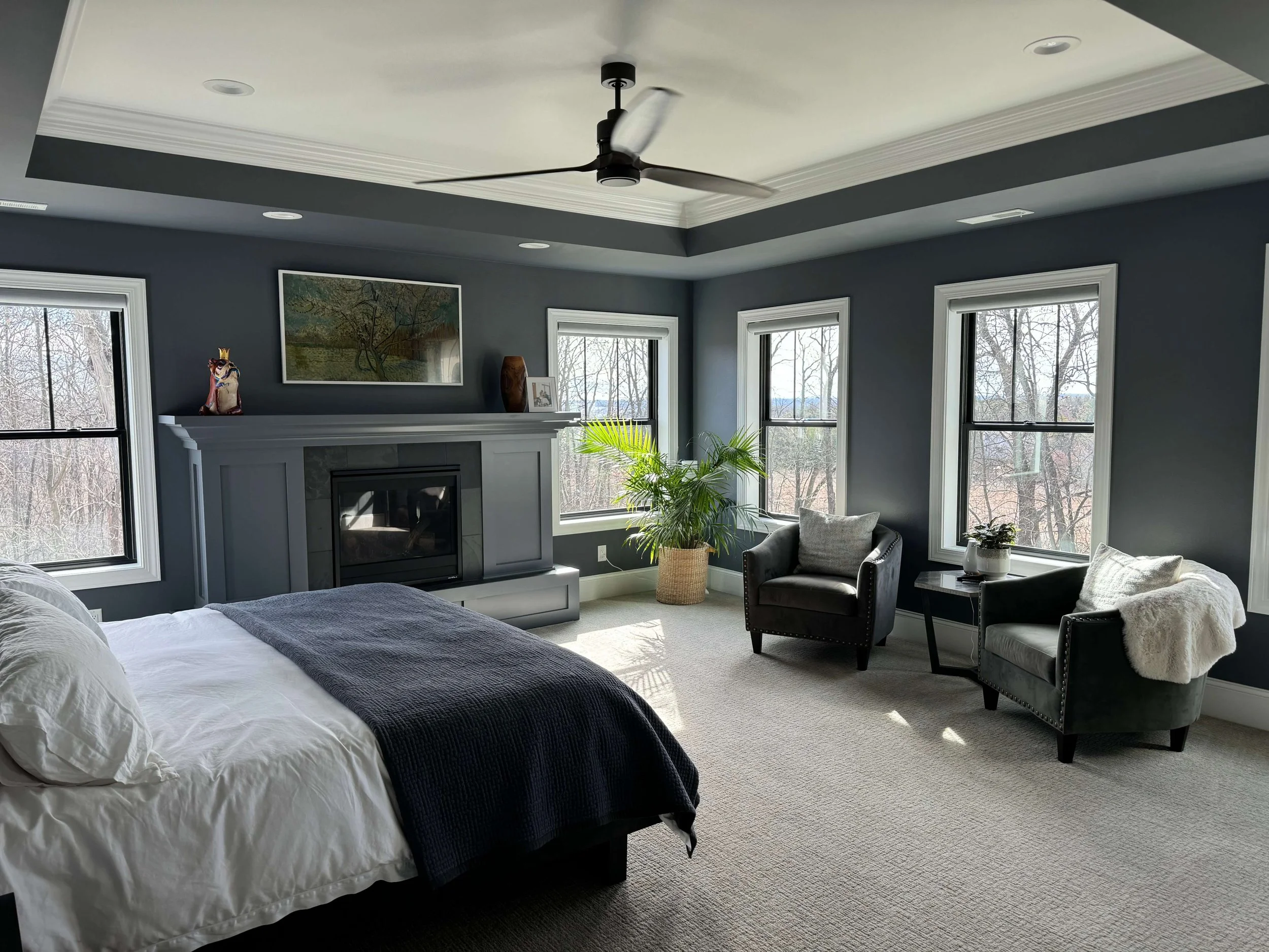 Our goal for this bedroom was to determine the perfect new paint color to help take the space from builder-grade to dramatic and refined. With just paint, this space went from bland to dramatic. I offered my suggestions for paint color, provided samples as well as guidance for sheen, and specific details on what portions of the room to paint for maximum results.