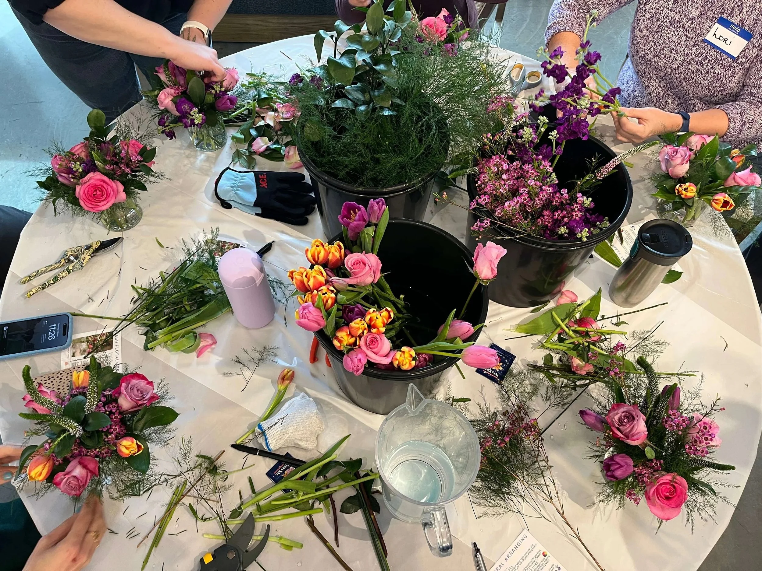 Floral arranging workshops are perfect for baby showers, bridal showers, birthdays, Mother’s Day, family gatherings, team building or an evening with friends.